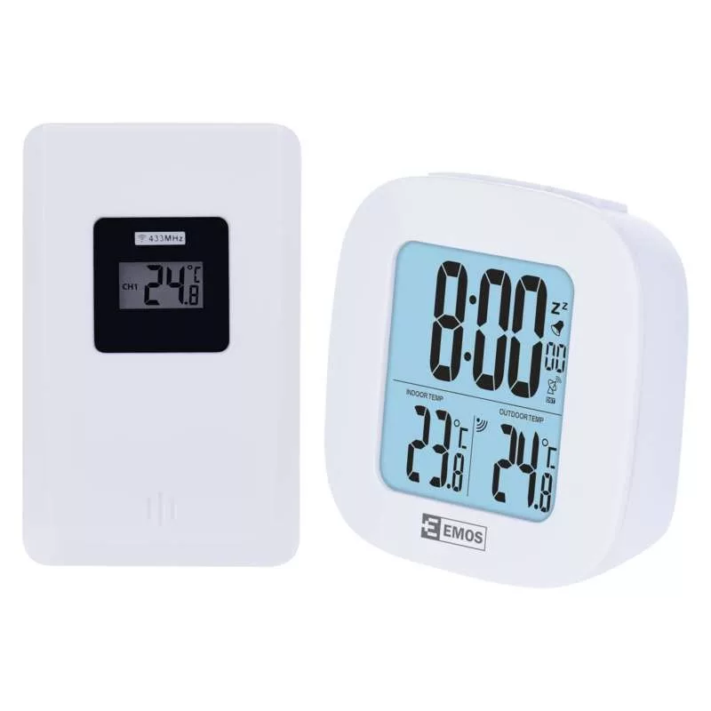 Vezeték nélküli hőmérő a beltéri és kültéri hőmérséklet kijelzésével. A hőmérő 30 m hatótávolságú vezeték nélküli érzékelővel rendelkezik.