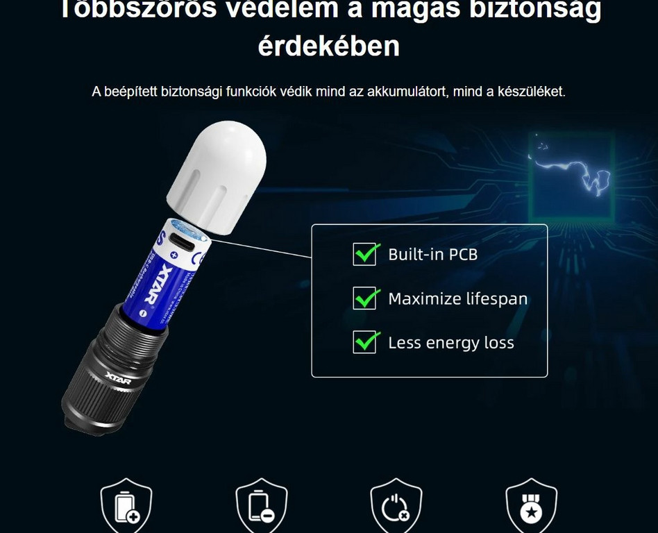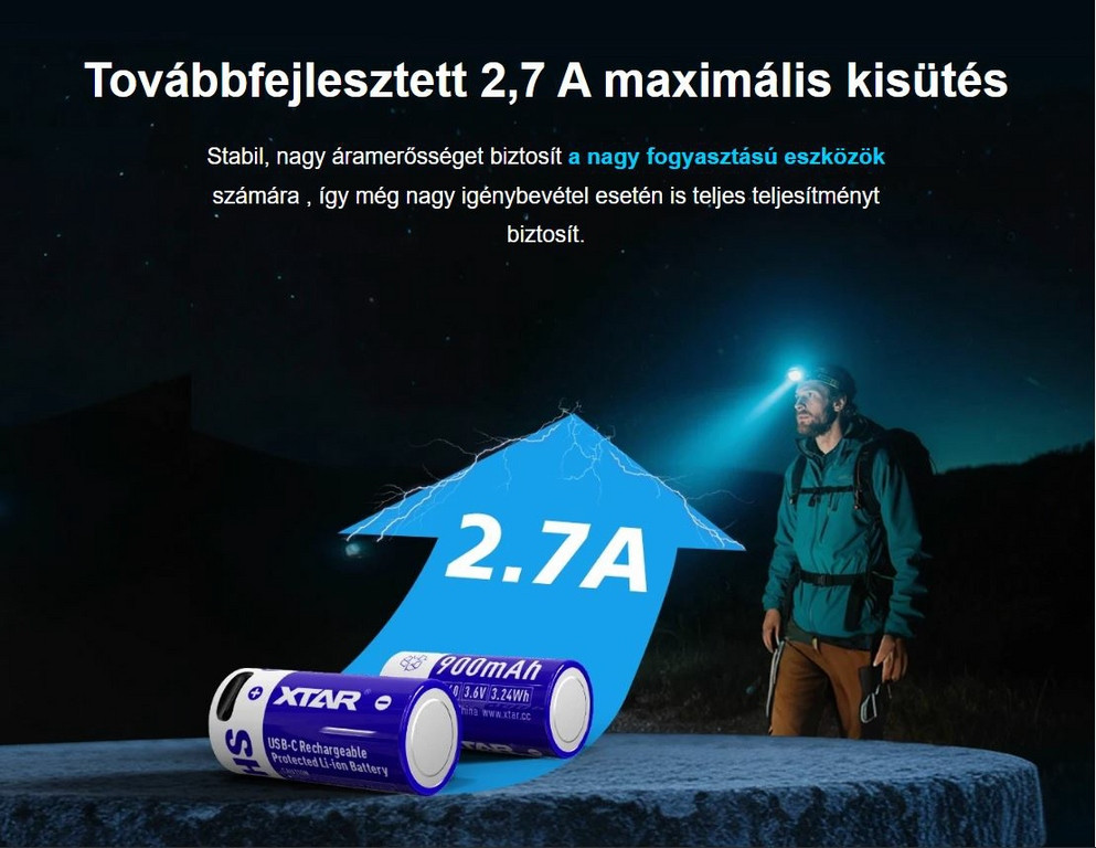 Xtar 16340 900mAh Li-Ion akkumulátor adatai: