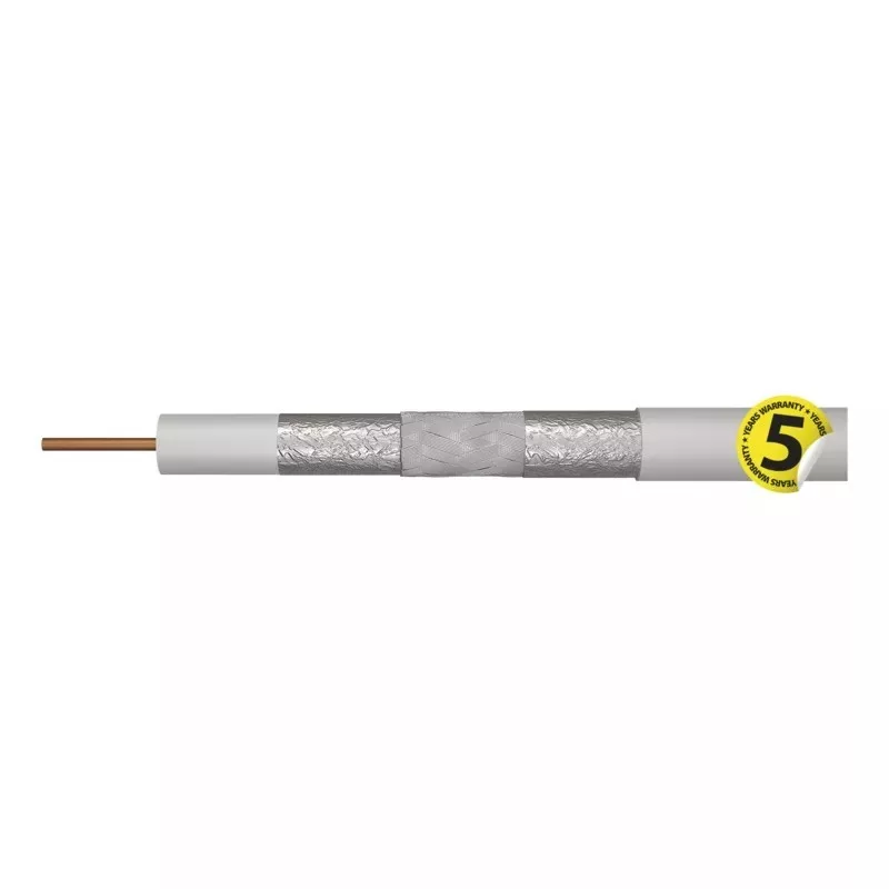 RG6 típusú, kiváló minőségű, tiszta réz központi vezetővel és TRISHIELD tripla árnyékolással rendelkező koaxiális kábel, fehér színben, A osztályú. A kábelt úgy tervezték, hogy megfeleljen a CCTV-, TV- és SAT-jelek nagy igénybevételt jelentő