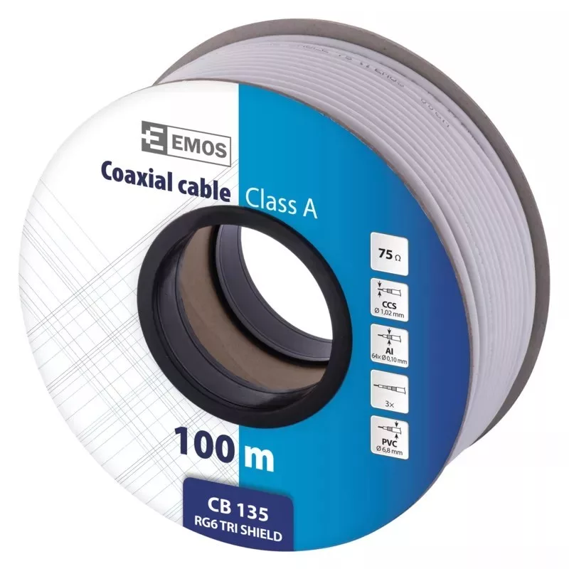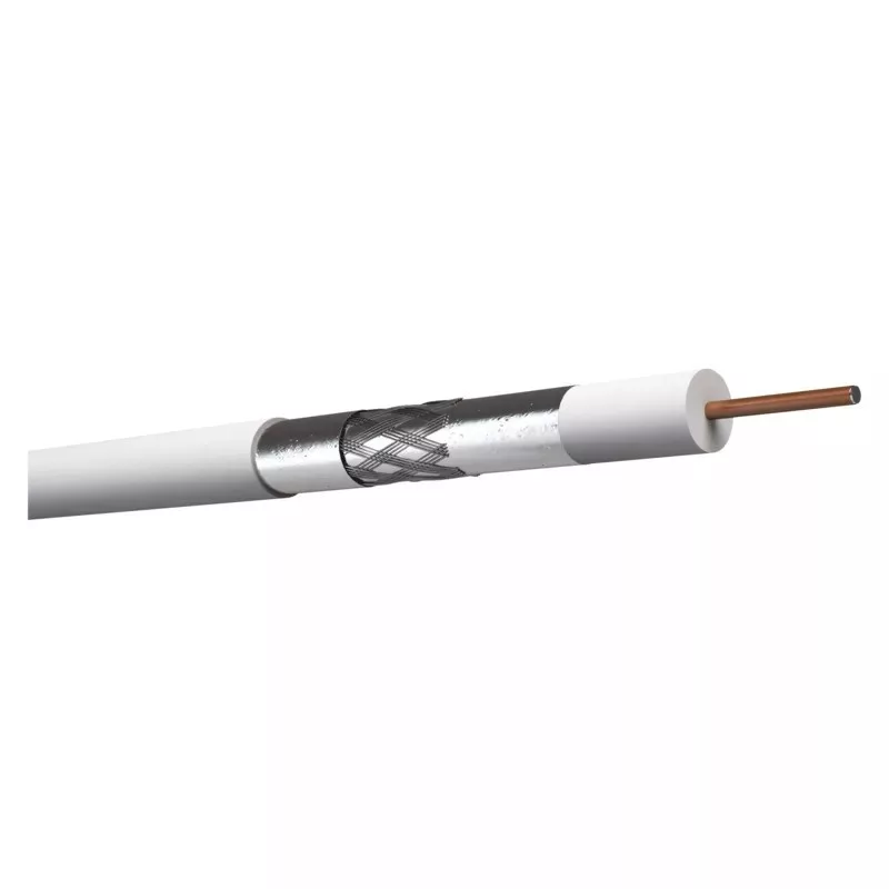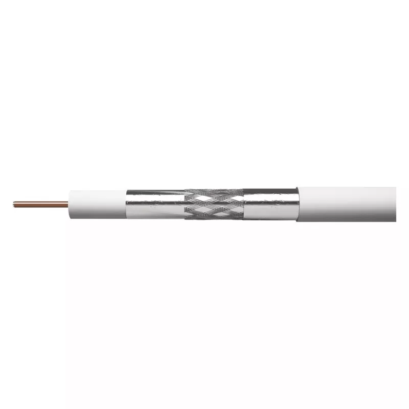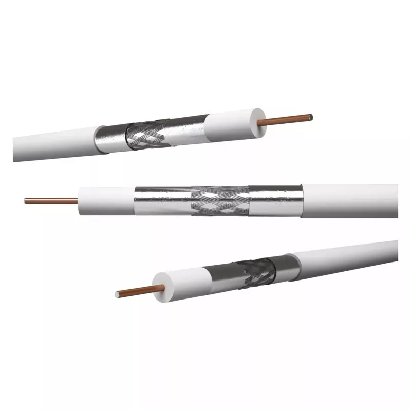 RG6 típusú univerzális koaxiális kábel vörösréz borítású acélszálból készült központi vezetővel, alumíniumvezetékből készült dupla árnyékolással, fehér színű. Ezt a kábelt TV- és SAT-jelek nem nagy igénybevételt jelentő átviteléhez