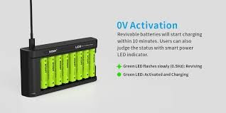 0V-os reaktiválása magában foglalja a cella behelyezését a töltőbe és a feszültség ellenőrzését. Ez a funkció lehetővé teszi az AAA/AA méretű Li-ion cellák ellenőrzését. Lemerült cella észlelésekor a töltő megpróbálja újraaktiválni azt. Felhívjuk figyelmét, hogy a minimális feszültséghatár túllépése korlátozza az újraaktiválás és az akkumulátor kímélésének lehetőségét.