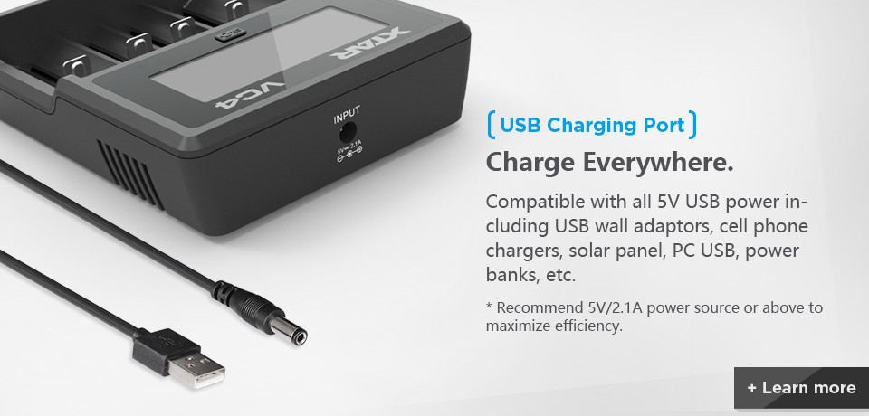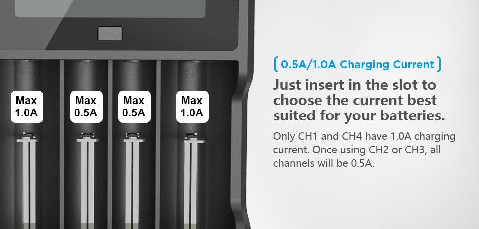 A töltő alkalmas a következő Li-Ion akkumulátorok töltésére: 10440 / 14500 / 14650 / 16340 /17335 / 17500 / 17670 / 18350 / 18490 / 18500 / 18650 / 18700 / 20700 / 21700 / 22650 / 25500 / 26650 / 32650 3.6/3.7V