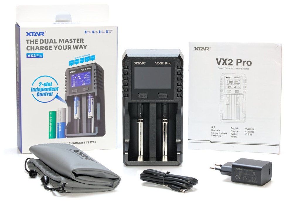 XTAR VX2 PRO SET Li-ion,LFP,Ni-Mh smart charger+tester+20W 3A fali adapter